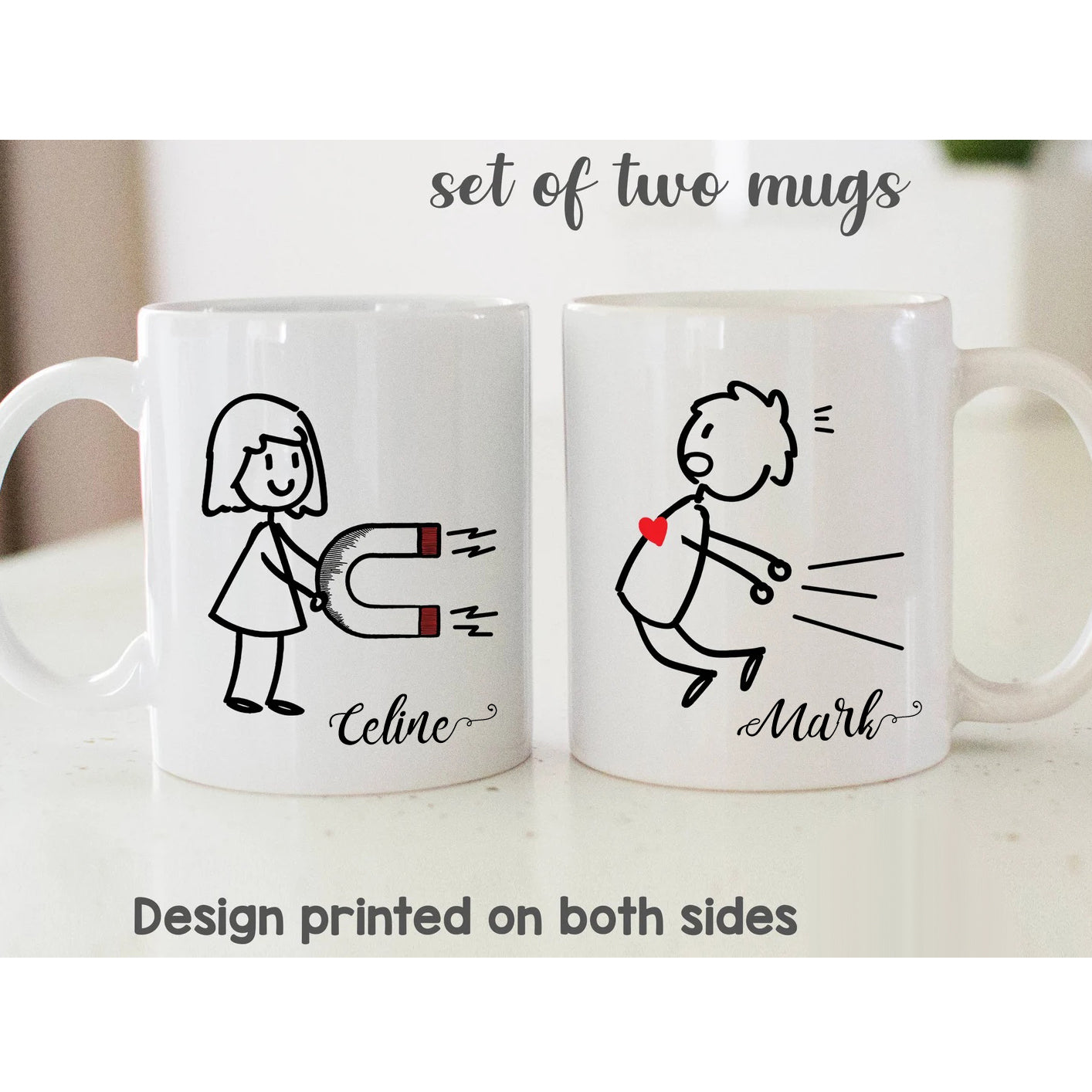 Stuck on You: Personalized Magnet Attraction Couple Mugs