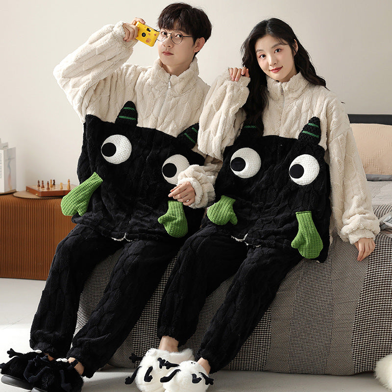Elevate your couple's loungewear game with our cartoon flannel pajama set. Order yours today and experience the warmth, comfort, and fun you deserve.