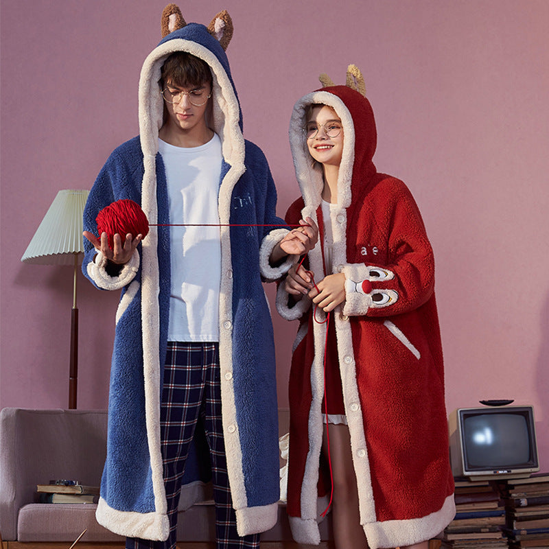 Matching Couple Bathrobe Winter Sleepwear for Couples
