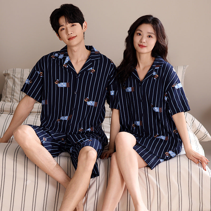 Cute Puppy Matching Couple Pajamas - 100% Cotton Summer Set