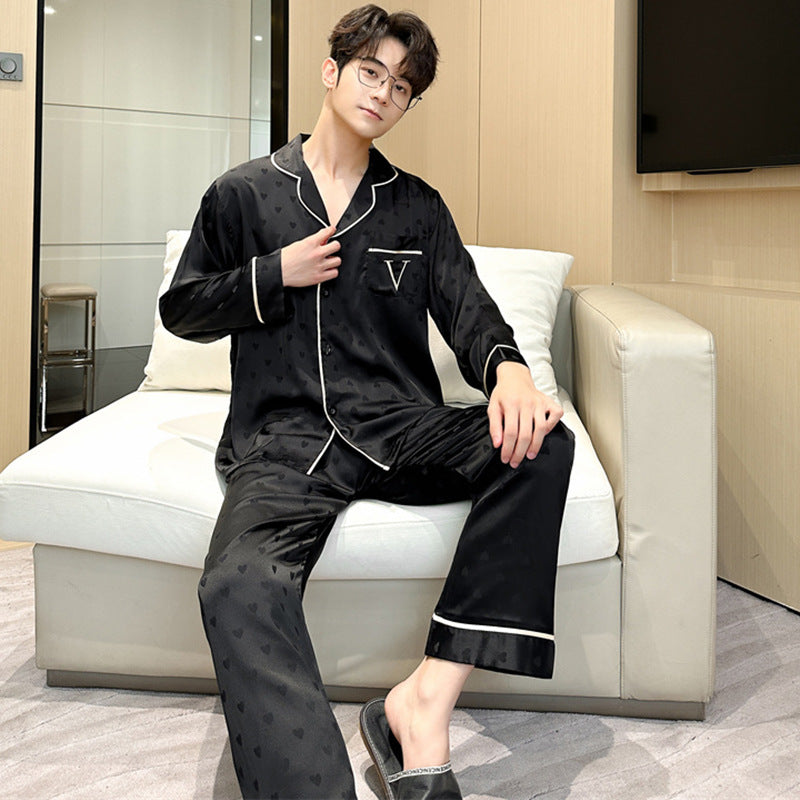 - What makes these pajamas special? The embossed heart motifs and V-embroidered chest pocket, paired with elegant contrast piping, offer a unique combination of romance and sophistication for couples.