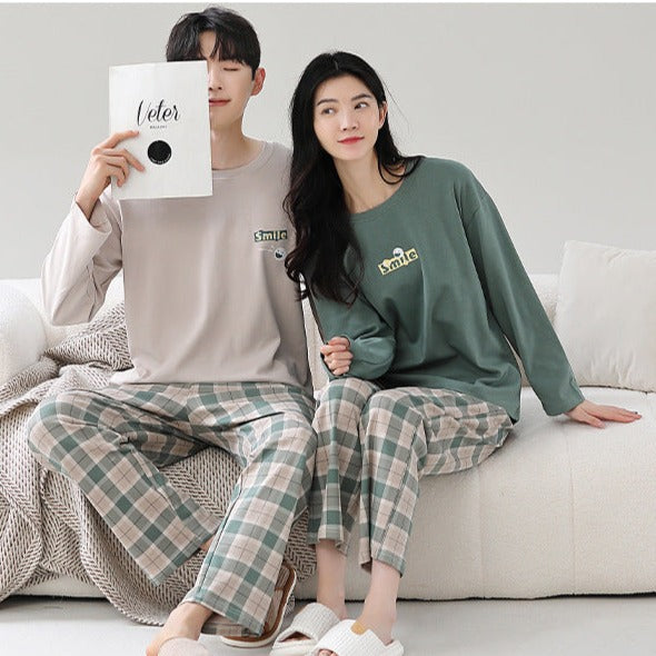 Yes! Our Matching Couples Long Sleeve Cotton PJs Set is designed with a Soft feel that truly caresses your skin. While ideal for Autumn and Spring, its comfortable thickness also makes it suitable for Summer (for cooler nights or air-conditioned environments). The overall design prioritizes a relaxed fit, making these pajamas perfect for unwinding at home, enjoying lazy mornings, or simply spending quality time together in ultimate comfort. It's ideal for Nighttime Sleep and general relaxation.