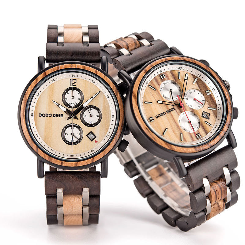 Introducing our Engravable Matching Sandalwood Couple Chronograph Watch Set, a perfect blend of elegance and functionality. Crafted from solid wood and stainless steel, these watches feature chronograph capabilities, making them ideal for both style and precision. Elevate your timekeeping experience together.