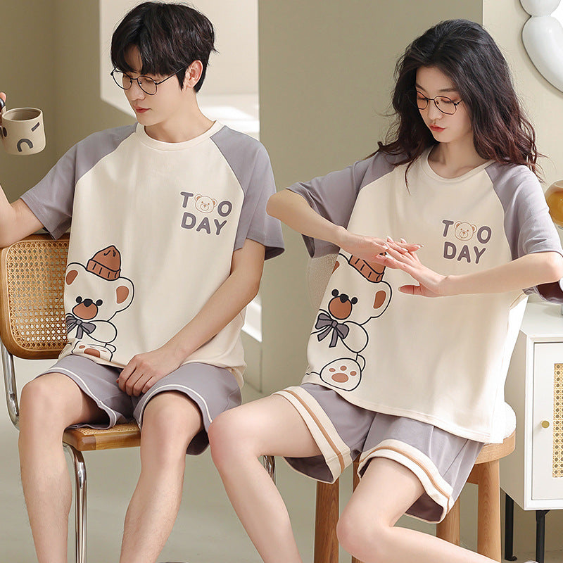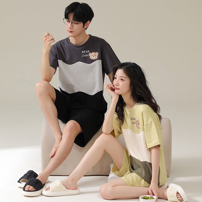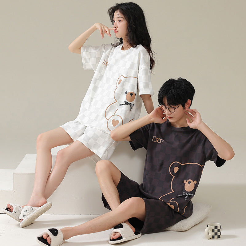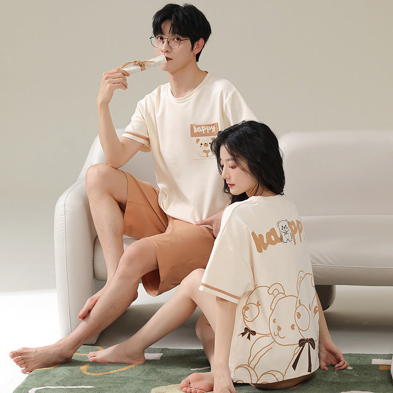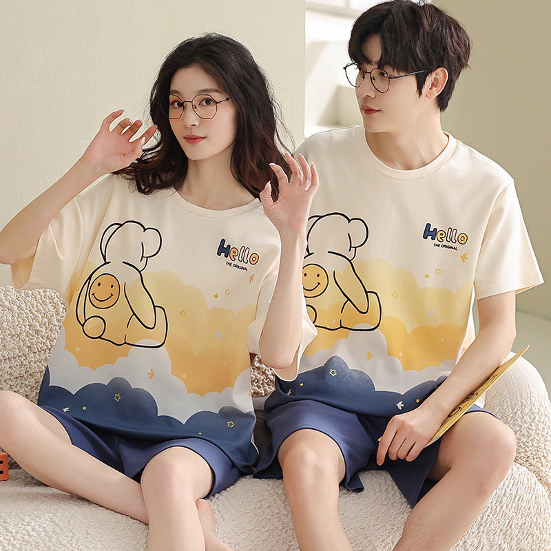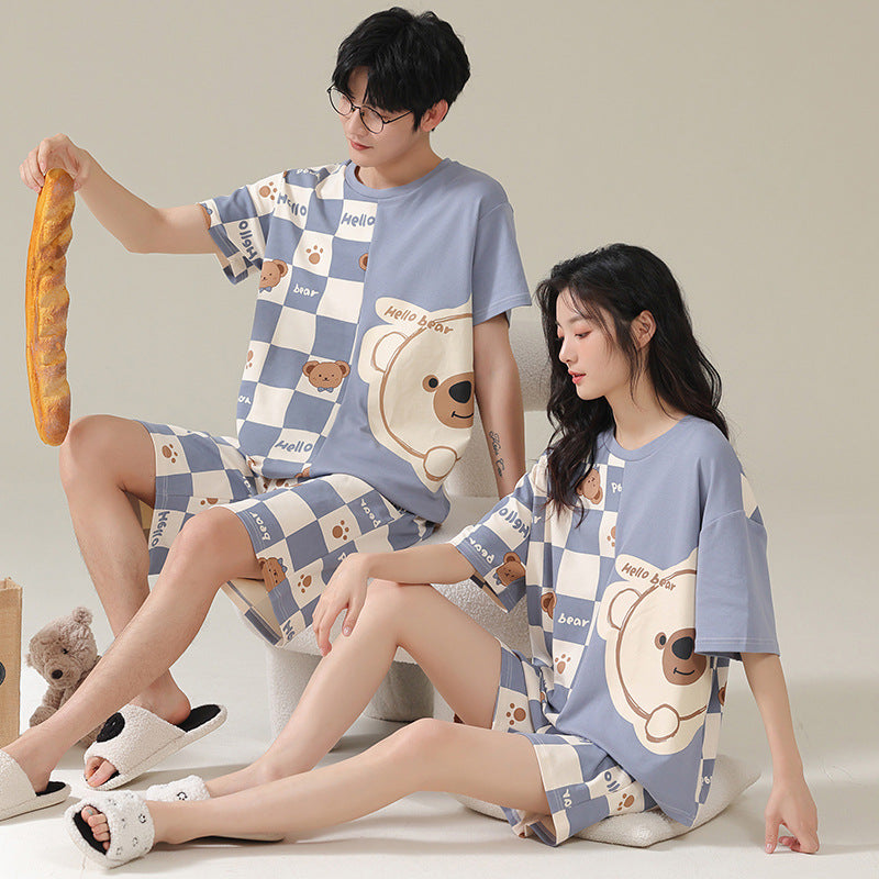 Matching Short Sleeves Shorts Sleepwear Set for Couples