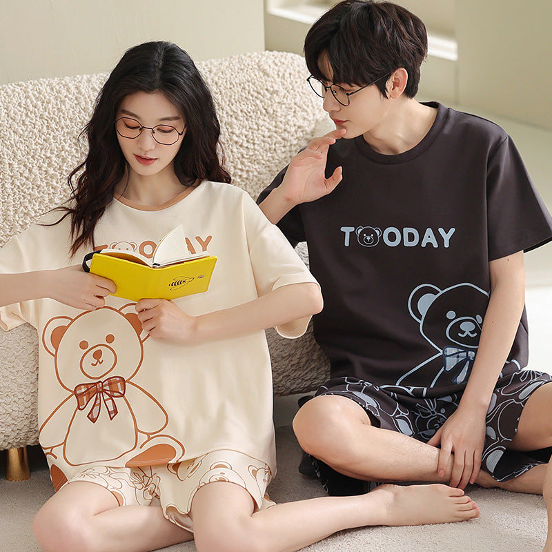 Experience fun and comfort with our Matching Short Sleeves Shorts Sleepwear Set for Couples. Crafted with breathable fabric, these shorts are perfect for summer nights. The cute cartoon design adds a playful touch, while the loose-fitting style ensures comfort. Embrace practicality with side pockets, ideal for keeping small essentials. Enjoy the cozy moments together with this matching sleepwear set, perfect for couples who love to relax and have fun in style.