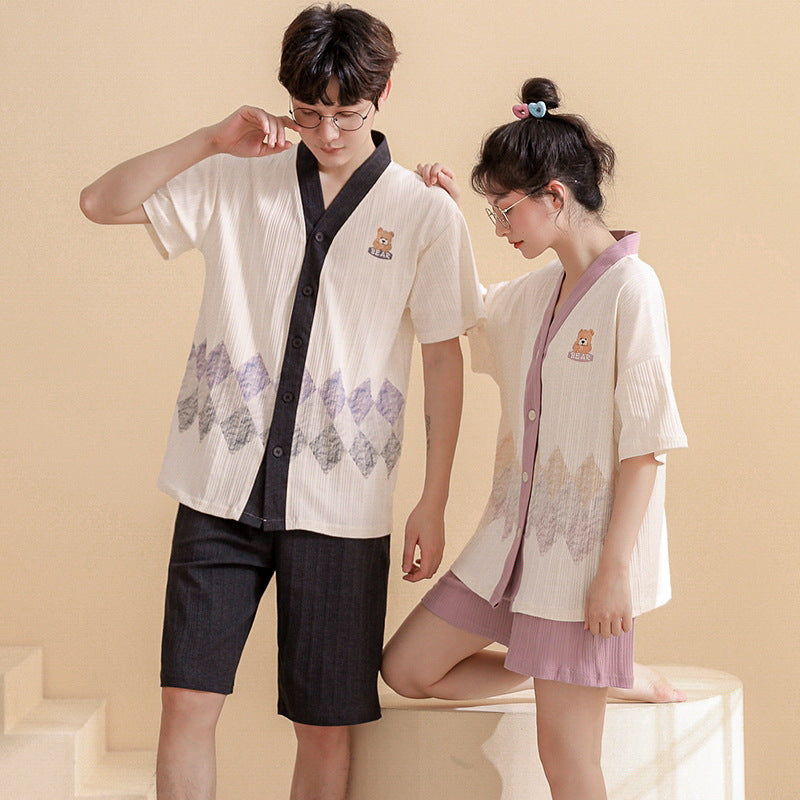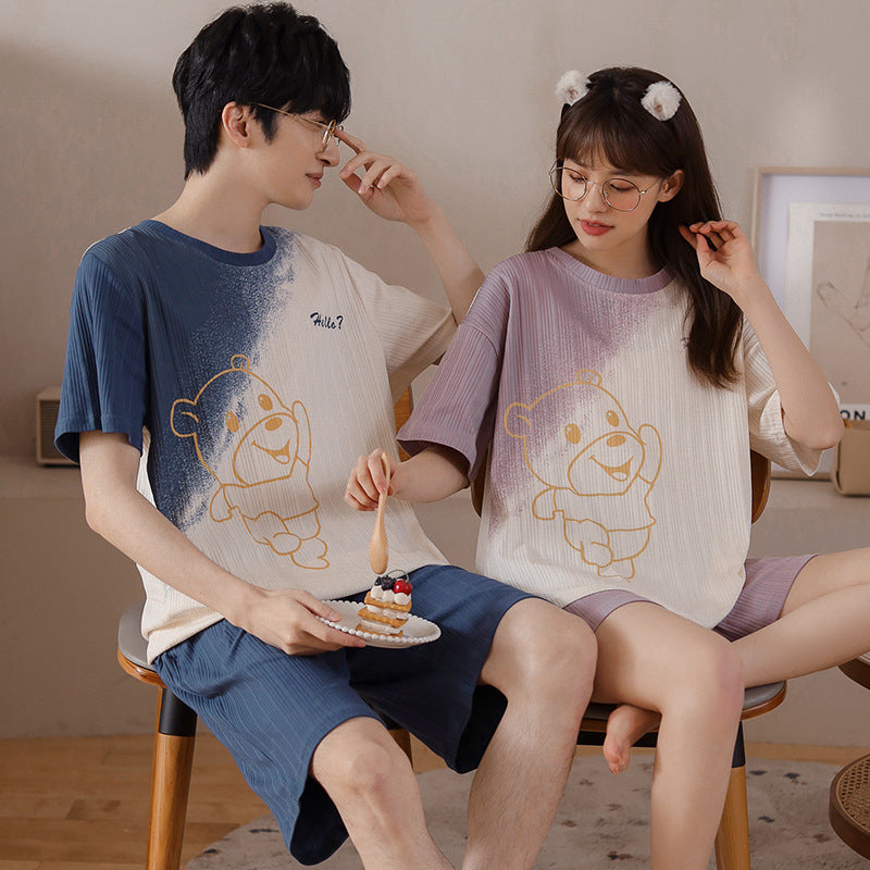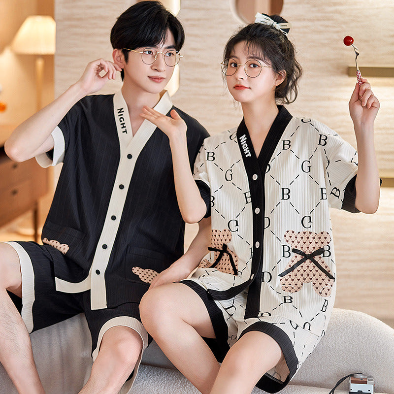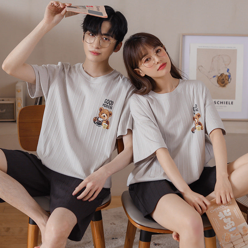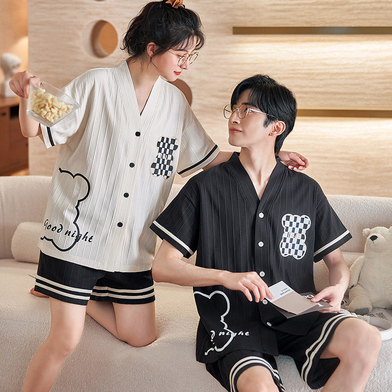Cute Matching Short Sleeve Pajamas for Couples - Soft Cotton