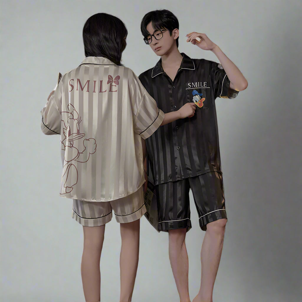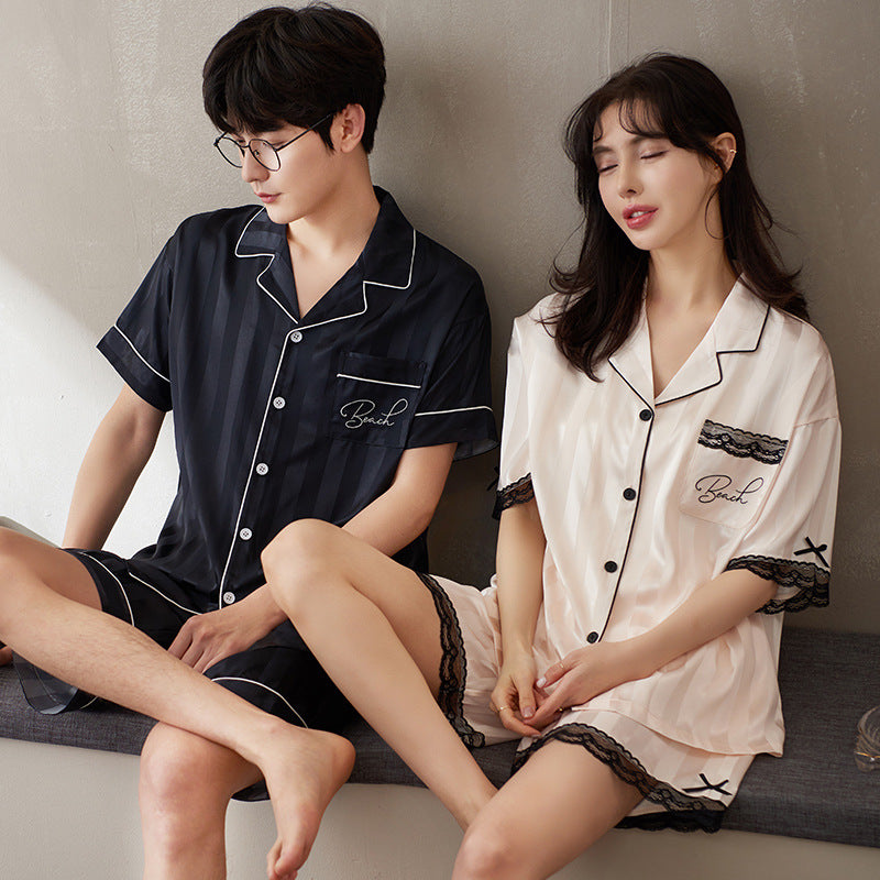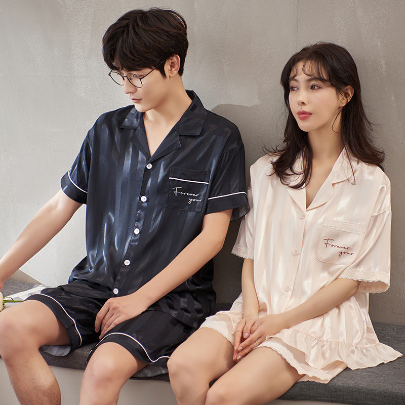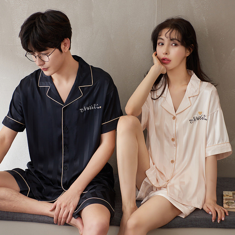 Experience luxurious comfort with our Matching Sleepwear Set for Couples, crafted with comfortable silk. The silky cooling fabric is perfect for warm summer nights, keeping you cool and refreshed. Embrace the elegance and comfort of silk, and enjoy the matching design as you relax together. Stay cool and connected with this perfect set for couples who appreciate a touch of luxury in their sleepwear.