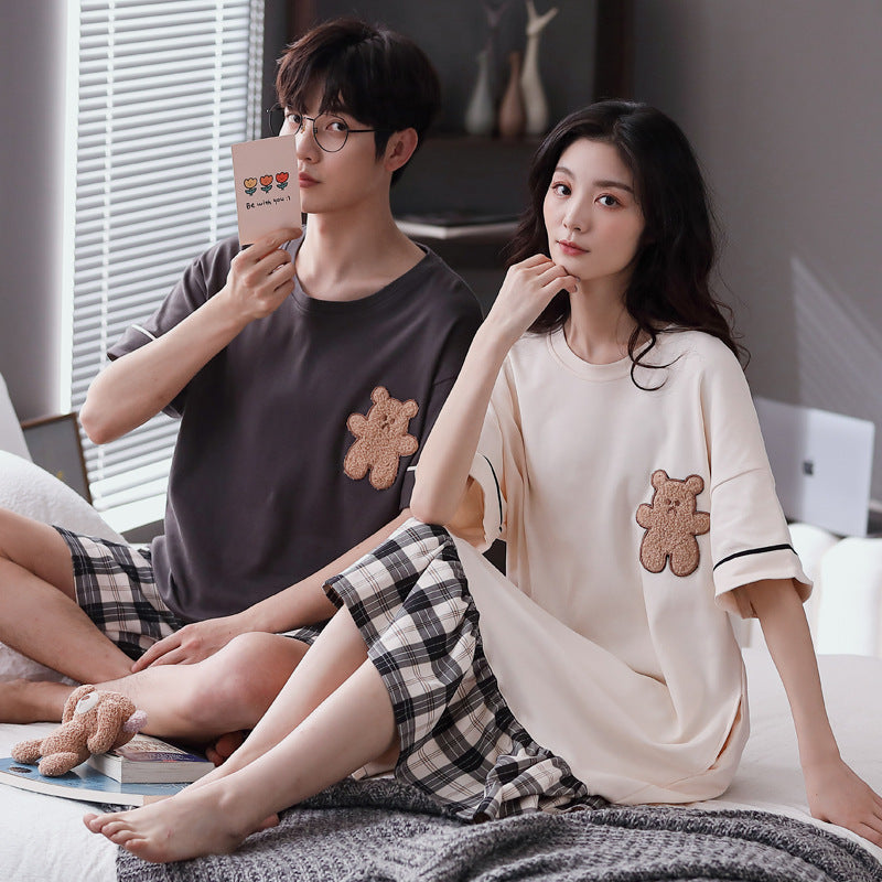 - Classic Round Neck & Cute Bear Prints: The simple and comfortable design features a flattering round neck for both the ladies' top (blouse) and the gents' top (shirt), accented by adorable bear prints for a touch of summer fun.