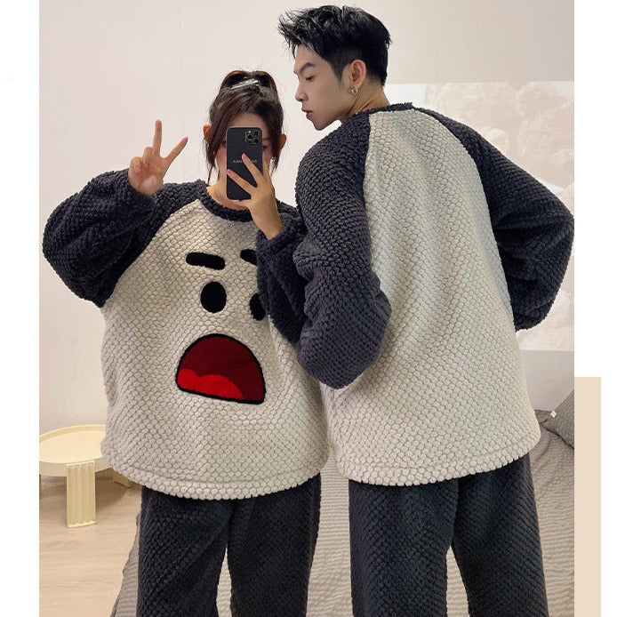 Cozy up with your loved one in this Matching Warm Sleepwear Pajamas Set. Made of luxurious Flannel, this set is designed to keep you both comfortable and toasty all night long. Enjoy a night of cuddles and laughter with the perfect sleepwear for couples!