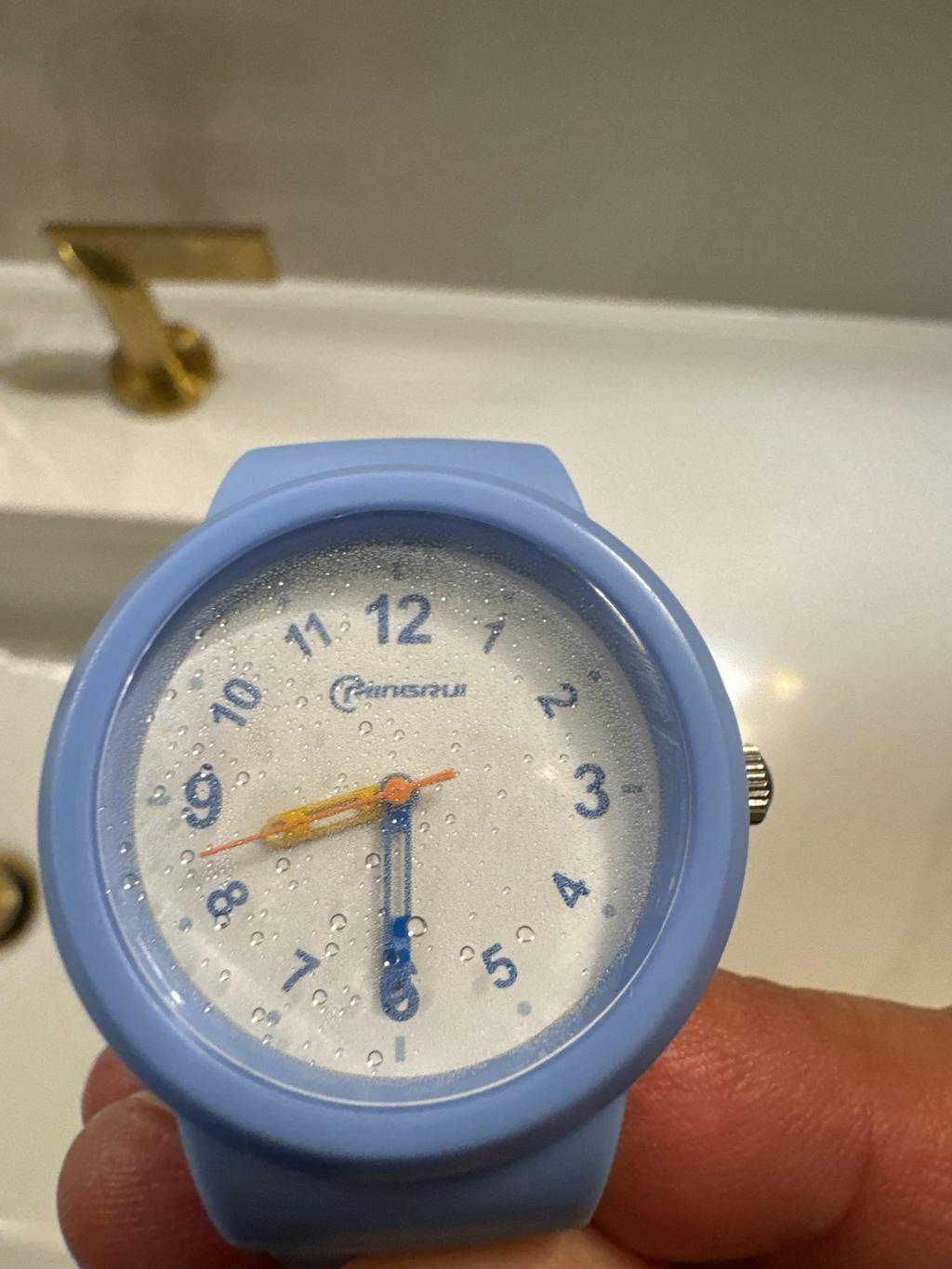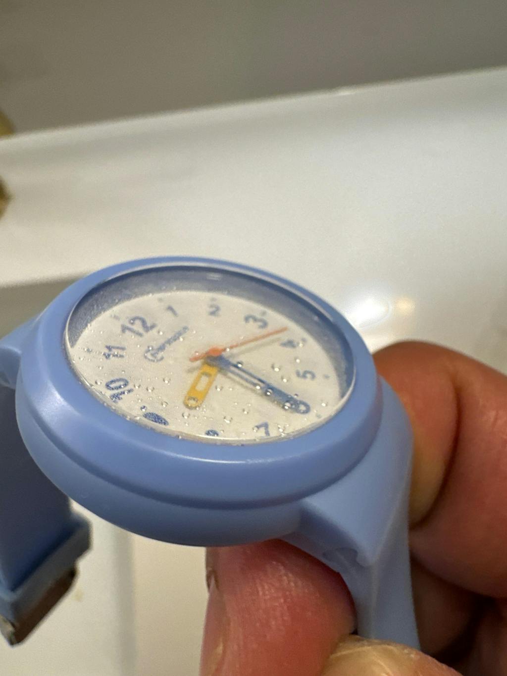 This watch states it’s “water resistant” up to 50 meters , yet when my son put it underwater in the bathtub , it fogged up on the inside and immediately quit working .