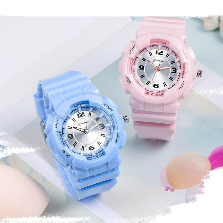 Gear up your teenagers with our Matching Waterproof Sports Watch Set. Designed for their active lifestyle, these watches are water-resistant, ensuring durability during water-based activities. With their sporty and functional design, including features like stopwatch and alarm, they are perfect for keeping track of time while staying active. Embrace the perfect blend of style and functionality with this matching watch set, ideal for teenagers who love sports and adventure.