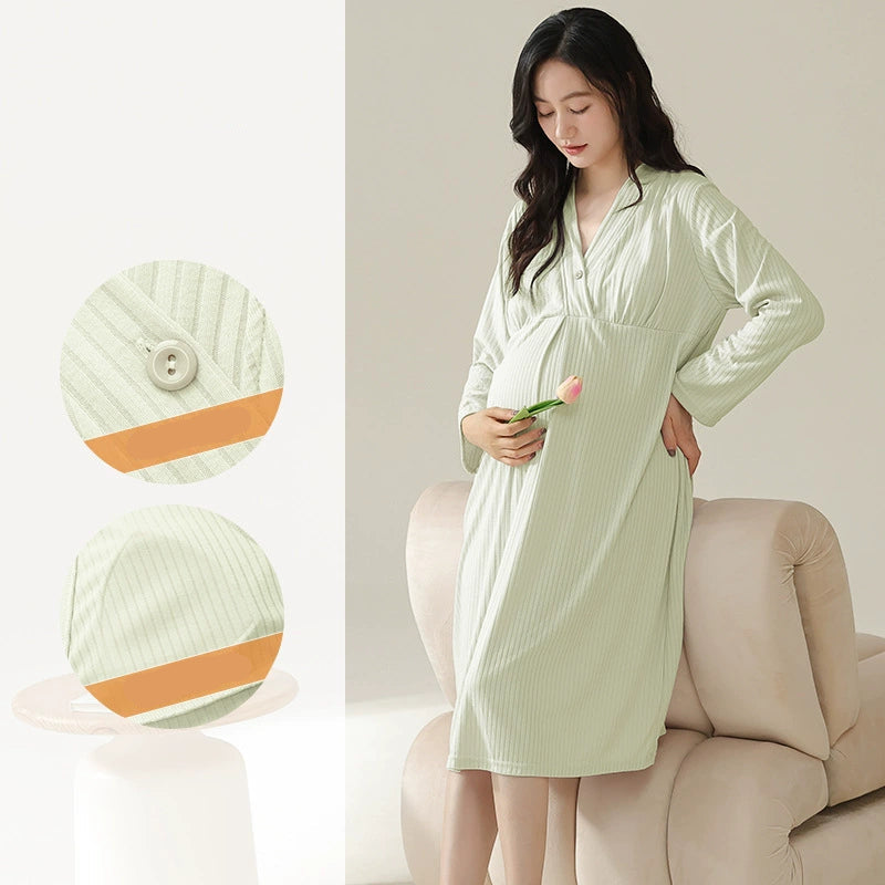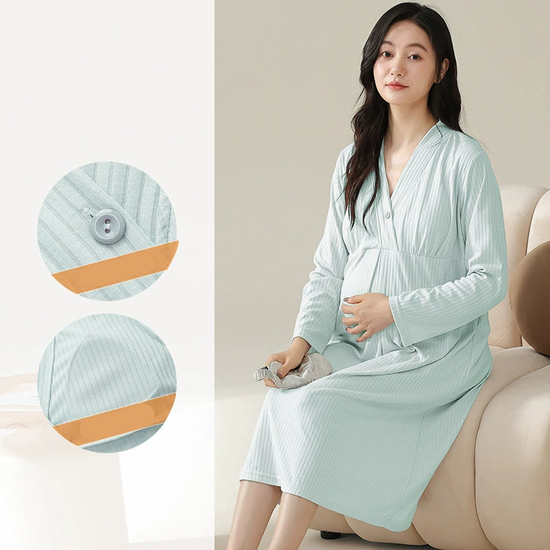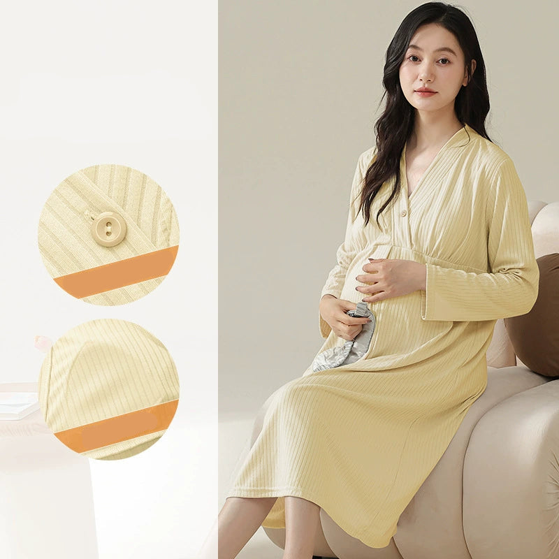 Embrace serene comfort and understated elegance throughout your motherhood journey with our Maternity Loungewear PJs Set with Nursing Access. This essential single nightgown, crafted for expecting, new, and nursing mothers, offers a perfect blend of style and ease. Its soothing low-saturation solid color and luxurious ribbed texture ensure a worry-free and luxurious experience, from peaceful nights at home to practical hospital stays.