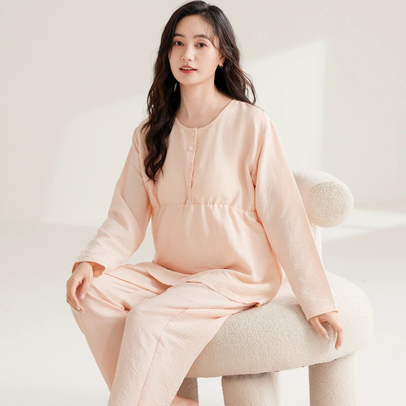 This set is designed to make your routine simpler. The all-in-one design with an integrated bra means you can enjoy gentle shaping and support without the need for a separate nursing bra. The easy, pullover style offers fuss-free comfort, allowing you to feel secure and relaxed whether you're sleeping, lounging, or caring for your new arrival.