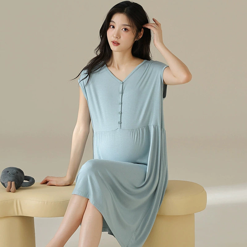 Imagine slipping into pajamas so soft and supportive, they feel like a gentle hug, nurturing you through every stage of pregnancy and beyond. This sleepwear set is designed to be your sanctuary of comfort, blending the breathable softness of 100% organic cotton with the thoughtful convenience of built-in breast pads. It’s your new best friend for nighttime ease and daytime lounging, especially during warmer months.