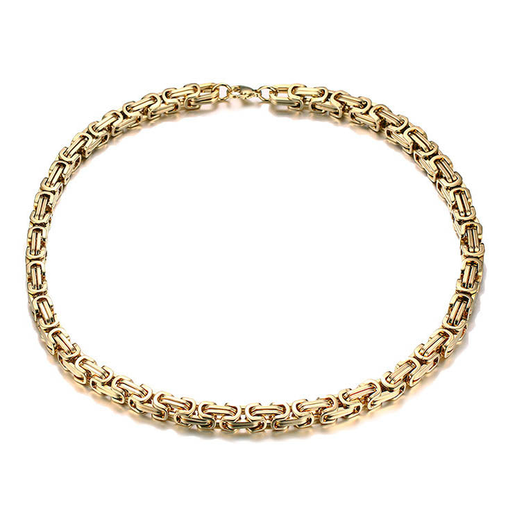 This anti-rust and anti-allergic highest quality stainless steel Men's chain Byzantine Flat Chain Necklace features 8mm thickness with 60cm length for a chain and is available in an elegant silver, black, gold, silver/gold, black/gold tone. It will be shipped in an exquisite gift box and a gift card which makes it a perfect birthday, anniversary, valentines or christmas gift for men.