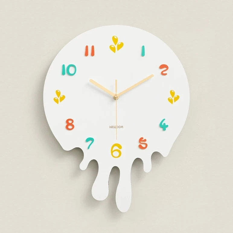 Unify modern style and quietude with the Minimalist Analog Silent Melting Wall Clock. This captivating timepiece features a unique "melting" design, silent operation, and a solid wood pointer, creating a mesmerizing and peaceful ambiance in your living room, bedroom, bakery shop, or dining room.