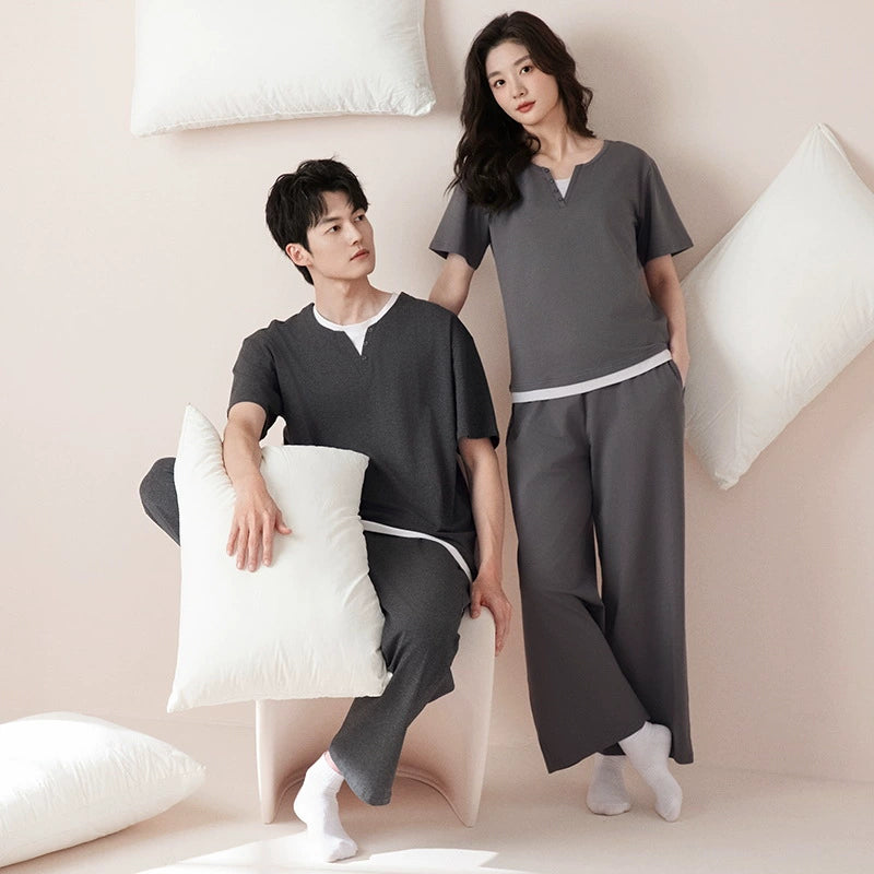 Looking for a minimalist matching pajama set for couples with a simple, timeless design?