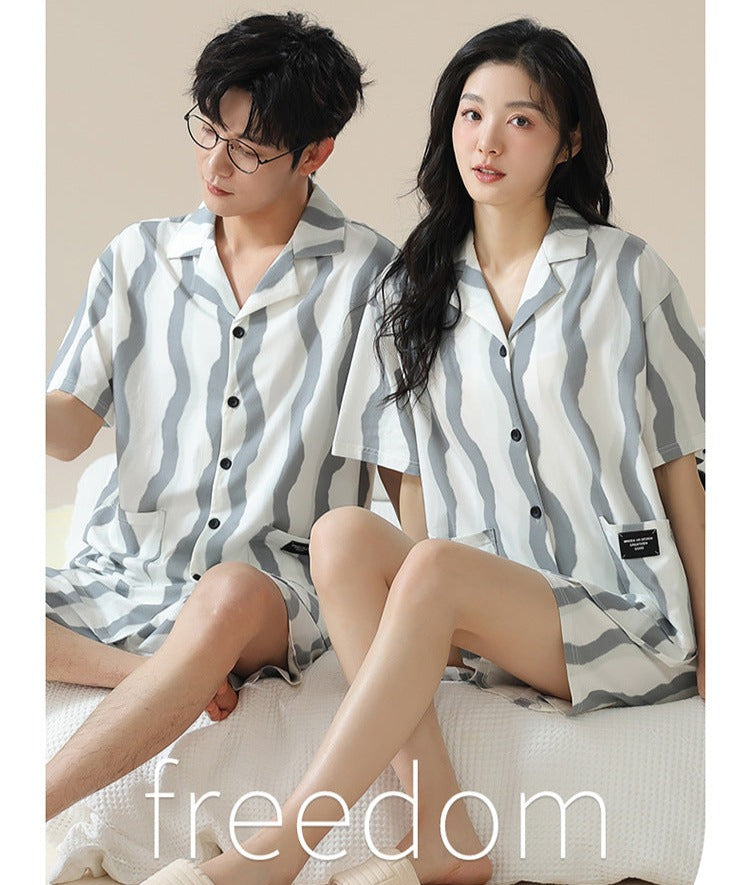 Beat the Heat in Style: Modal Shorts Summer Pajama Set for Couples (Vertical Stripes)