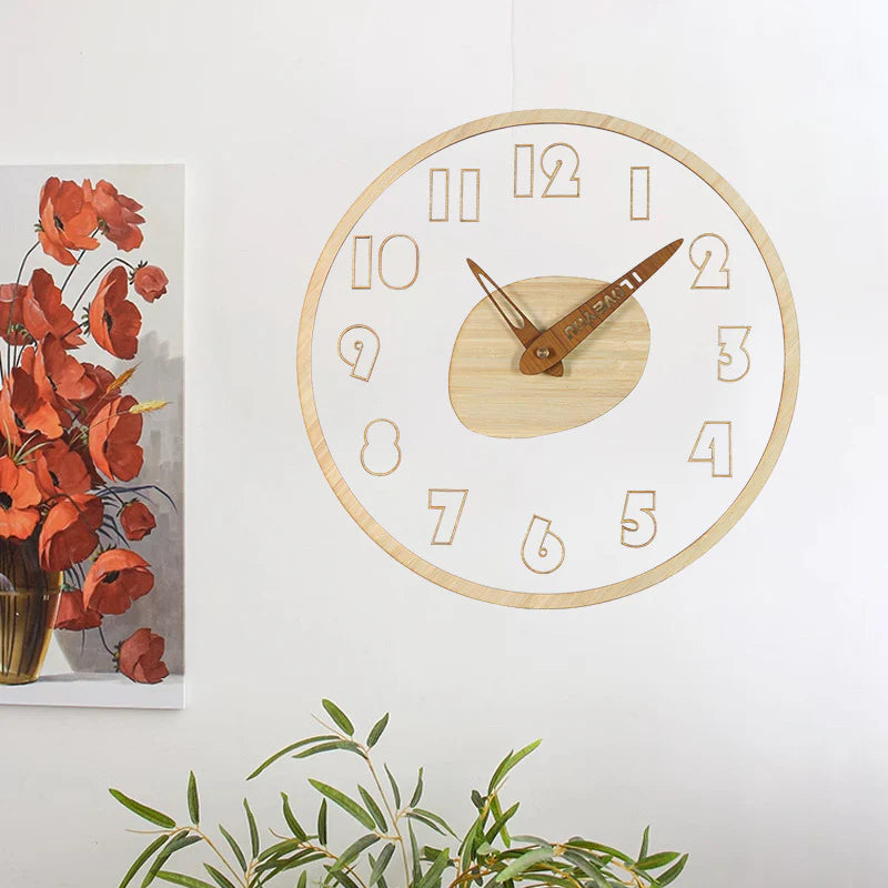 Natural wood warmth meets clean acrylic clarity. This 12-inch wall clock pairs solid wood accents with a crisp open-face dial and whisper-quiet movement—an easy upgrade for living rooms, bedrooms, entryways, and studies.