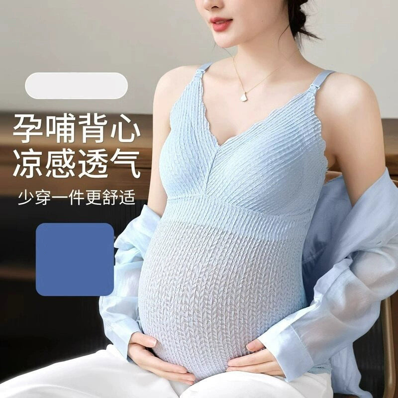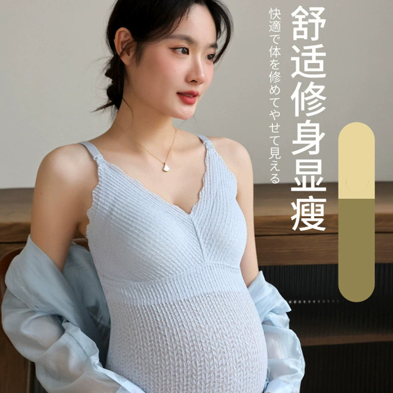 Prioritizing skin-friendly purity, this top is available in beautiful and calming light blue and light pink. It features environmentally friendly printing and dyeing, ensuring a hypoallergenic and luxuriously gentle feel for both mom and baby. This commitment to purity provides peace of mind, making it a truly soft maternity camisole you can trust.