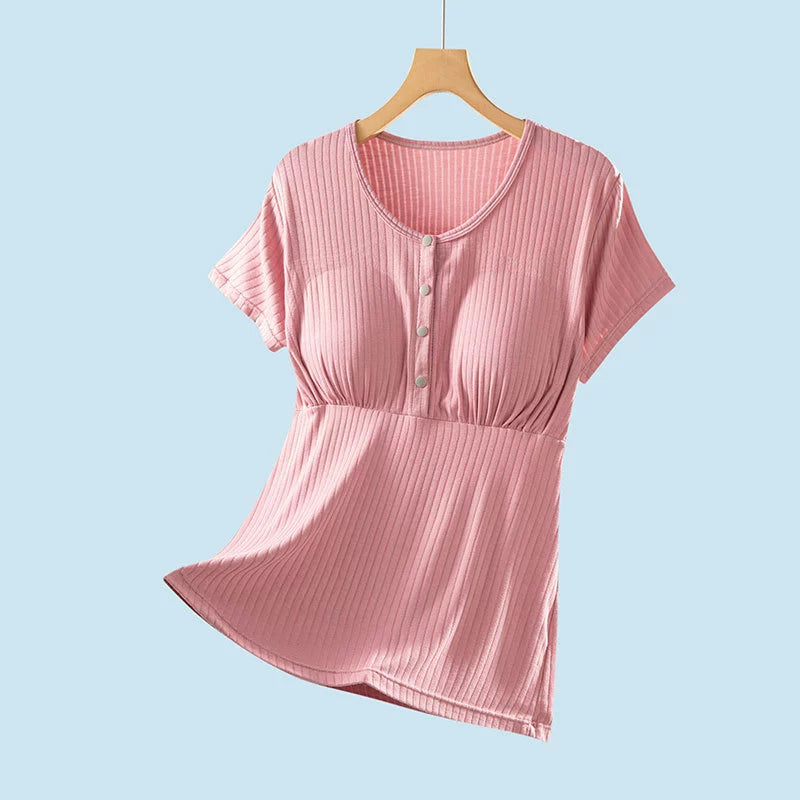 Yes! Beyond being your perfect maternity sleepwear, this short-sleeve camisole is designed for everyday comfort & home wear, ideal for cozy lounging, comfortable sleep during warmer nights, or light daily activities. It's also a perfect choice for spring and summer days, versatile enough for casual doctor's appointments, quick errands, or relaxed meetups. Its solid color and minimalist style ensure both comfort and discreet pajamas with nursing access on the go, making it an indispensable maternity lounge set essential for your dynamic lifestyle.
