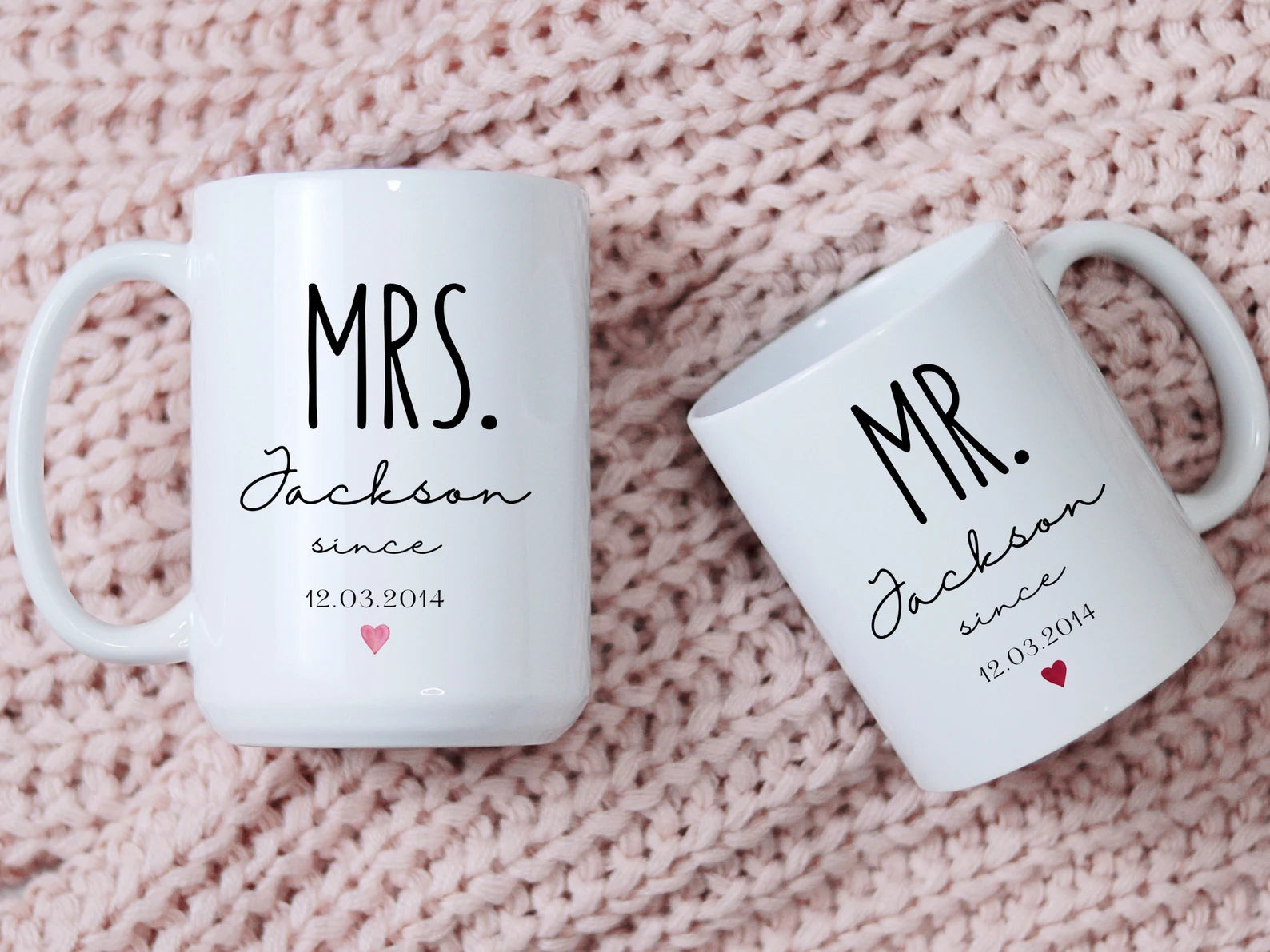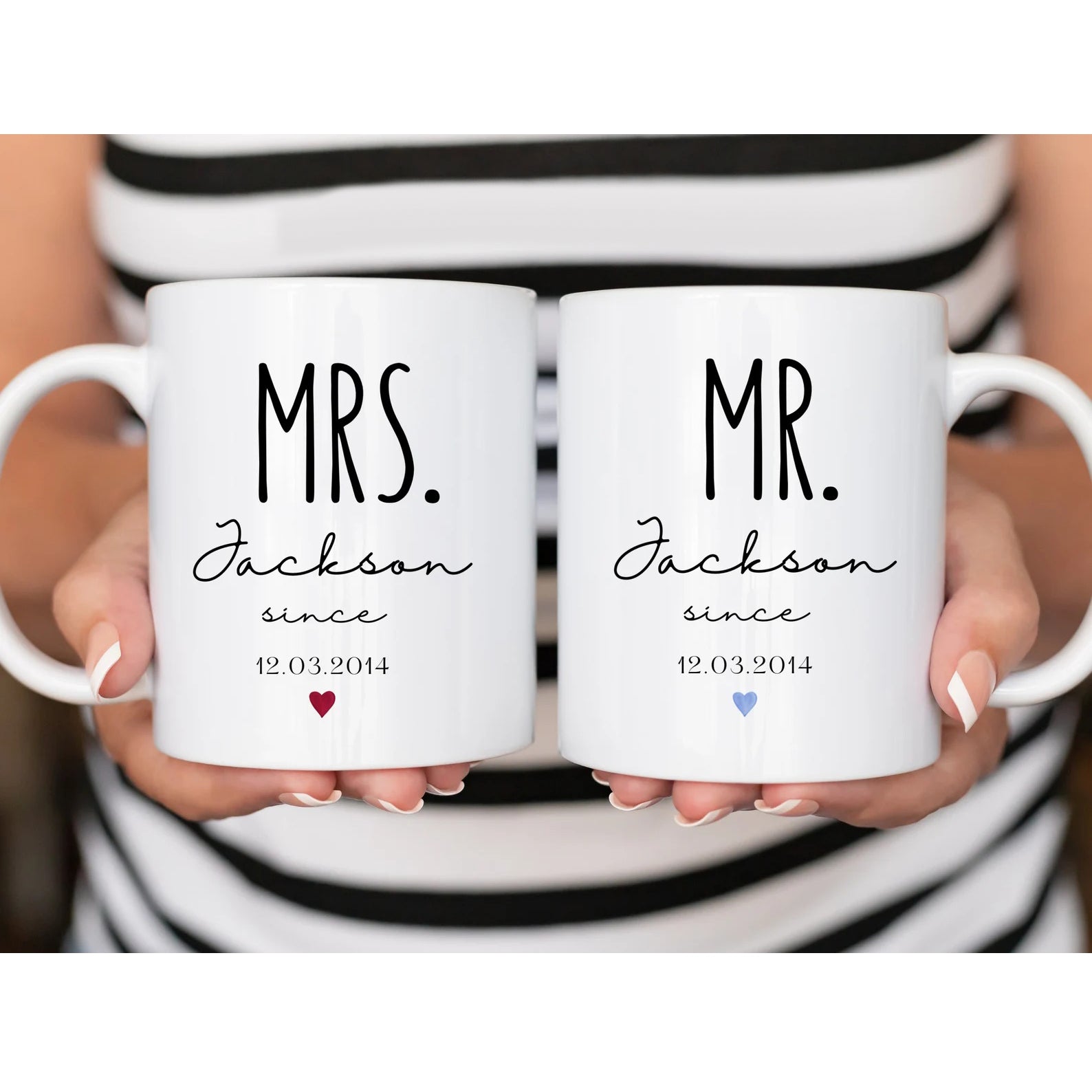 Commemorate your special day with this set of personalized Mr. & Mrs. anniversary mugs!