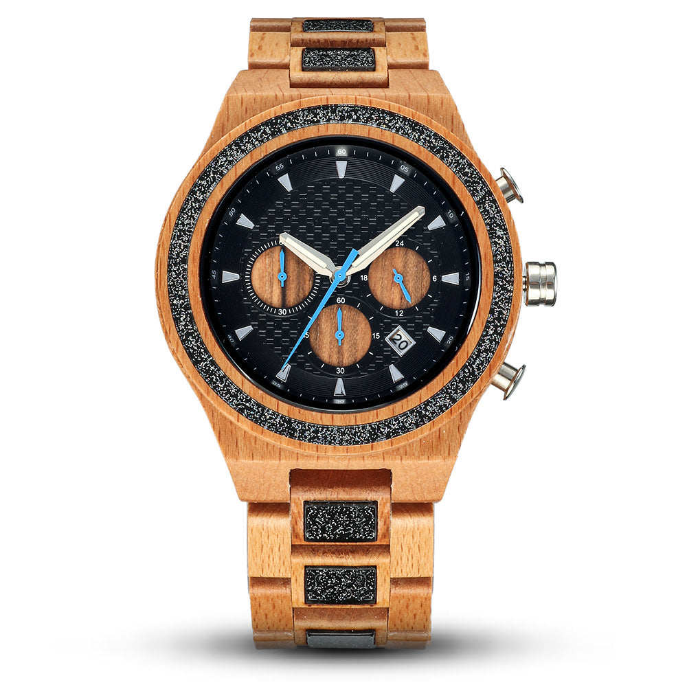 Multifunctional 6 Needles Wooden Mens Watch