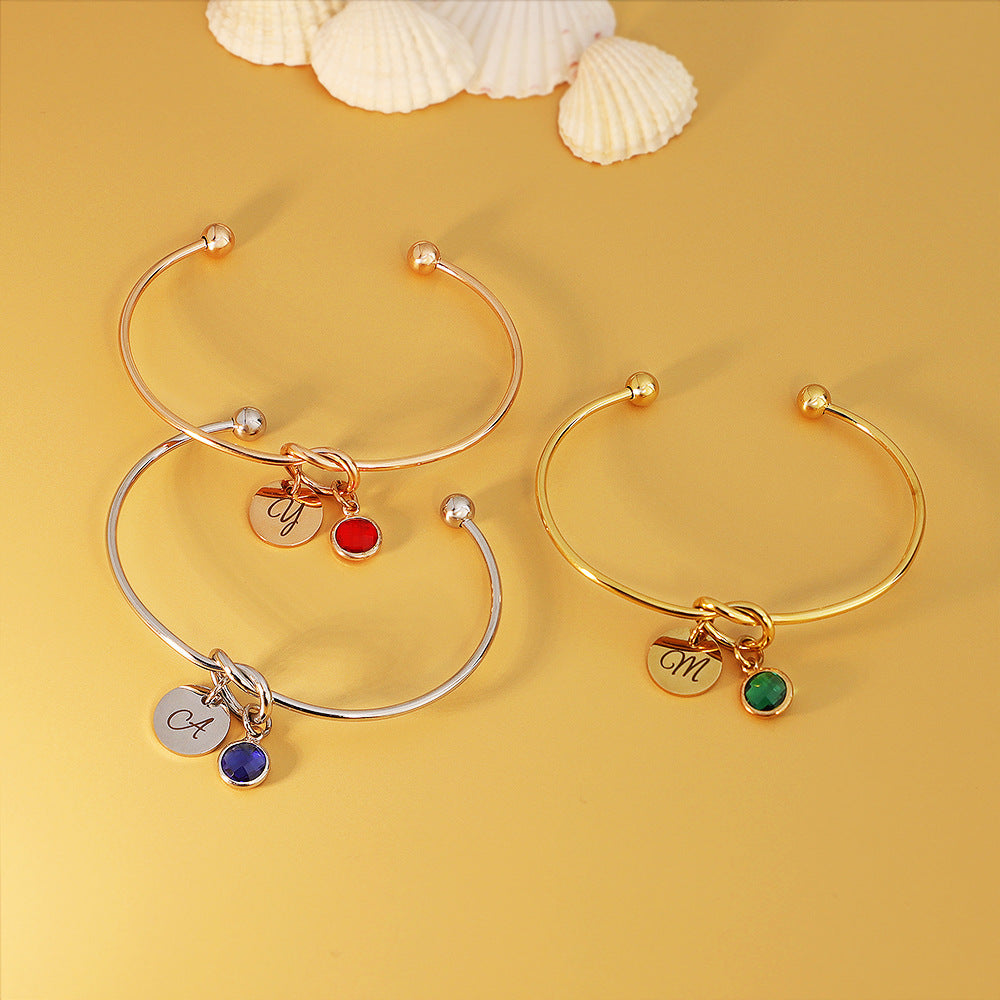 Name Initial Birthstone Charm Bracelet