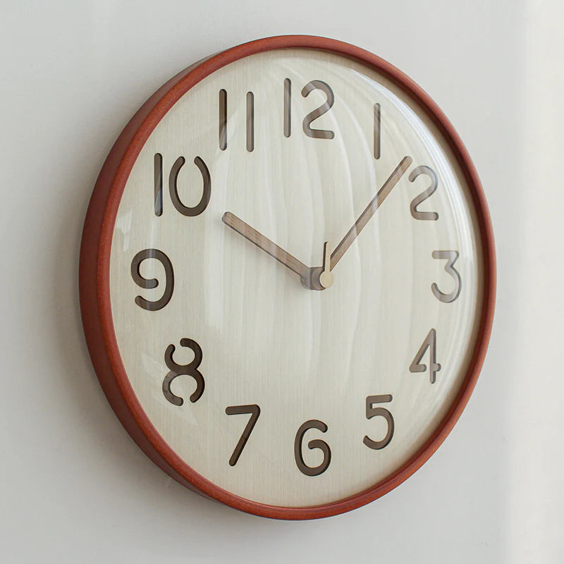 Nordic Silent Wall Clock – Solid Wood, 12" (Non-Ticking)