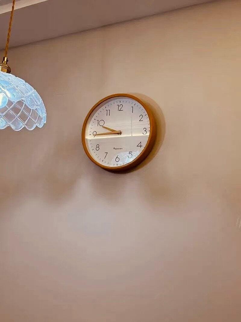 The clock looks fantastic up on the wall. The wood frame feels sturdy, and the overall minimalist look works perfectly with the simple, neutral tone of the room. It just blends in nicely as a functional piece of decor.