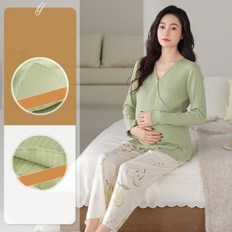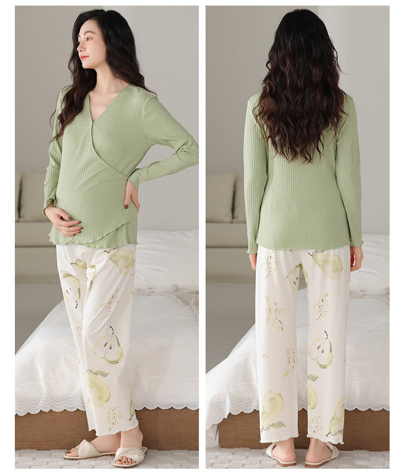 Yes! This nursing access maternity sleepwear set embodies a casual chic style, making it perfect for serene home living, unwinding, and cultivating a tranquil personal haven during your pregnancy and postpartum recovery. Beyond home, this light green top and boldly contrasting print pants set is a comfortable yet distinctive choice for quick errands or relaxed meetups, where you desire both comfort and discreet pajamas with nursing access on the go. It's truly an indispensable maternity lounge set for your dynamic lifestyle.