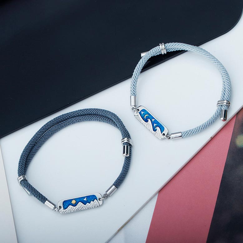Bound by Nature: Ocean & Mountain Couple Promise Bracelets