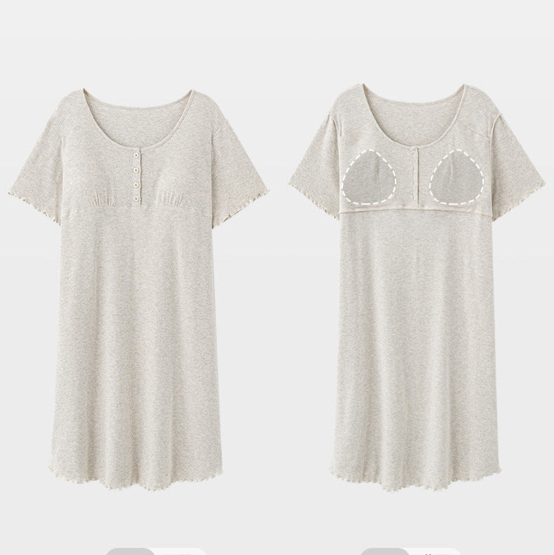 Yes, this Padded Bra Long Shirt Maternity Sleepwear is designed with integrated padded bra support for your convenience. It offers a gentle, subtle lift and comfort, reducing the need for an additional bra. This feature enhances overall ease, allowing you to seamlessly enjoy your personal sanctuary and feel ready for chic & quick ventures without compromising on comfort or discretion.