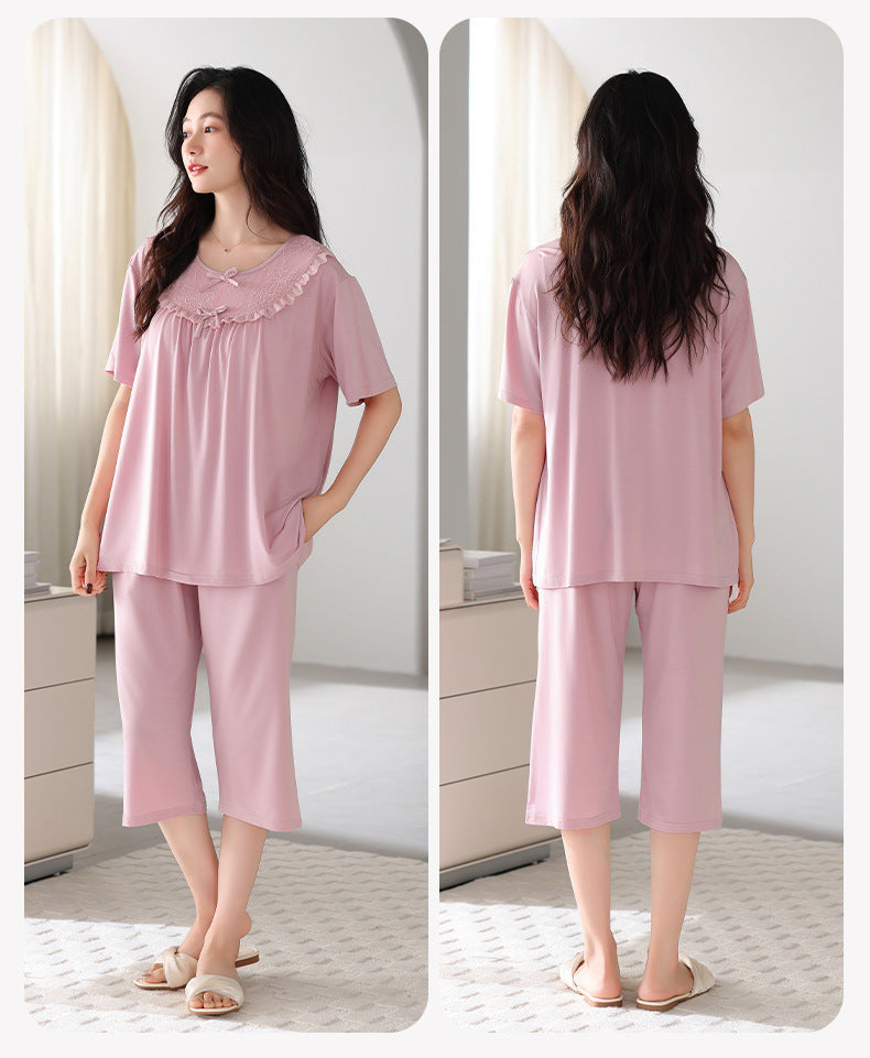 Never! Engineered with a regular fit and natural stretch from the Modal and Spandex, this set guarantees complete freedom of movement. The short-sleeve pullover top and comfortable Capri pants are expertly tailored to flow with your body, ensuring you can lounge and sleep without any twisting, riding up, or restrictive tightness. Experience genuine, uninhibited comfort.