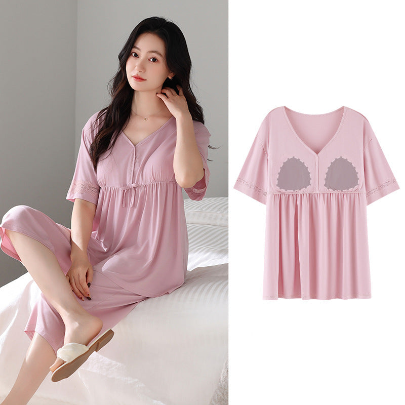 For new mothers, our Padded Bra Soft Modal PJs Set is an ideal choice for both postpartum recovery and breastfeeding. The incredibly soft, gentle fabric combined with the integrated, breathable pads offers comfortable support and discreet modesty for sensitive skin. This thoughtful design simplifies nighttime feeds and prioritizes your well-being and ease.
