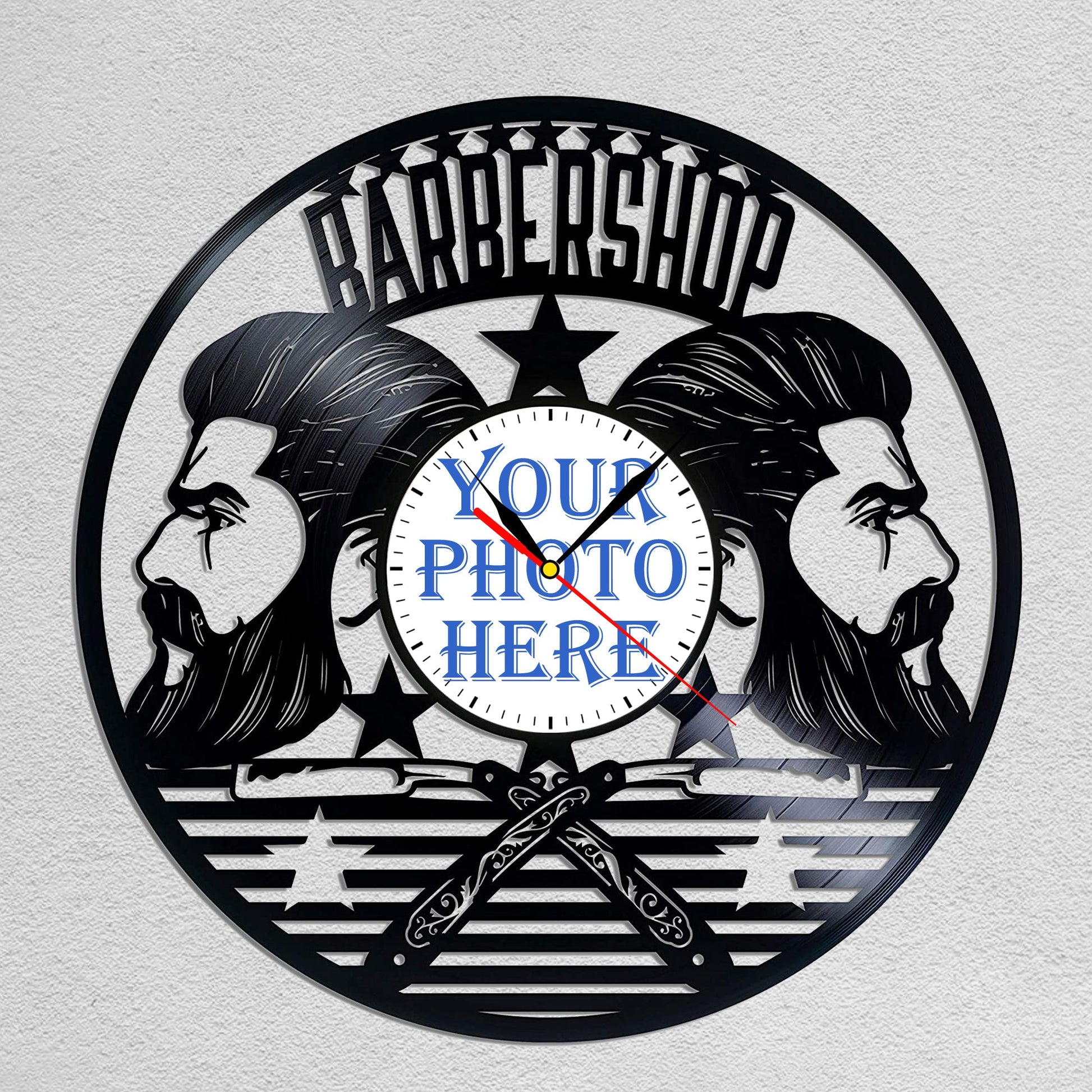 Personalized Barbershop Wall Clock – Custom LP Record Design, Silent Quartz Movement