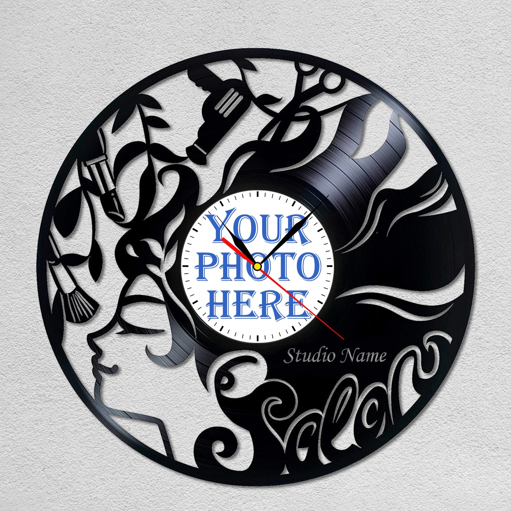 Personalized Beauty Salon Wall Clock – Custom LP Record Design, Silent Quartz Movement