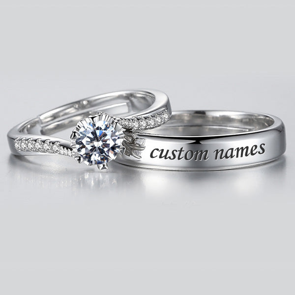 Celebrate the beautiful journey of your love with our exquisite Personalized 1 Carat Moissanite Promise Rings for Couples - Adjustable Sterling Silver. Crafted from gleaming sterling silver, these rings feature a stunning 1-carat equivalent moissanite gemstone, radiating brilliance that mirrors your commitment. Perfect for both engaged and dating couples, this set symbolizes your everlasting bond. For established couples living together, these rings are a constant, radiant reminder of your profound connection and shared future.