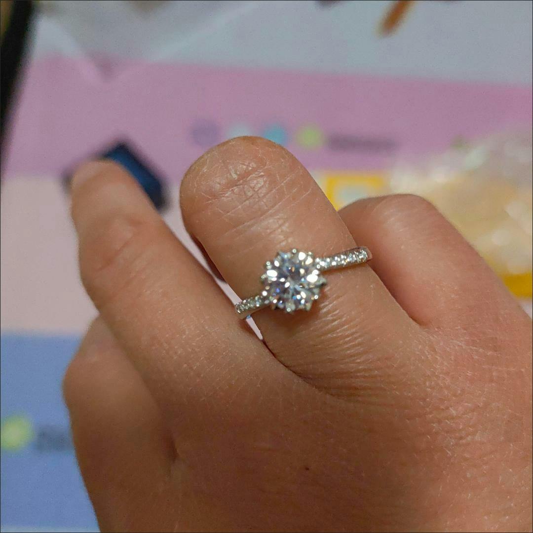 - Gemstone: 1 Carat Equivalent Moissanite (Solitaire Style)