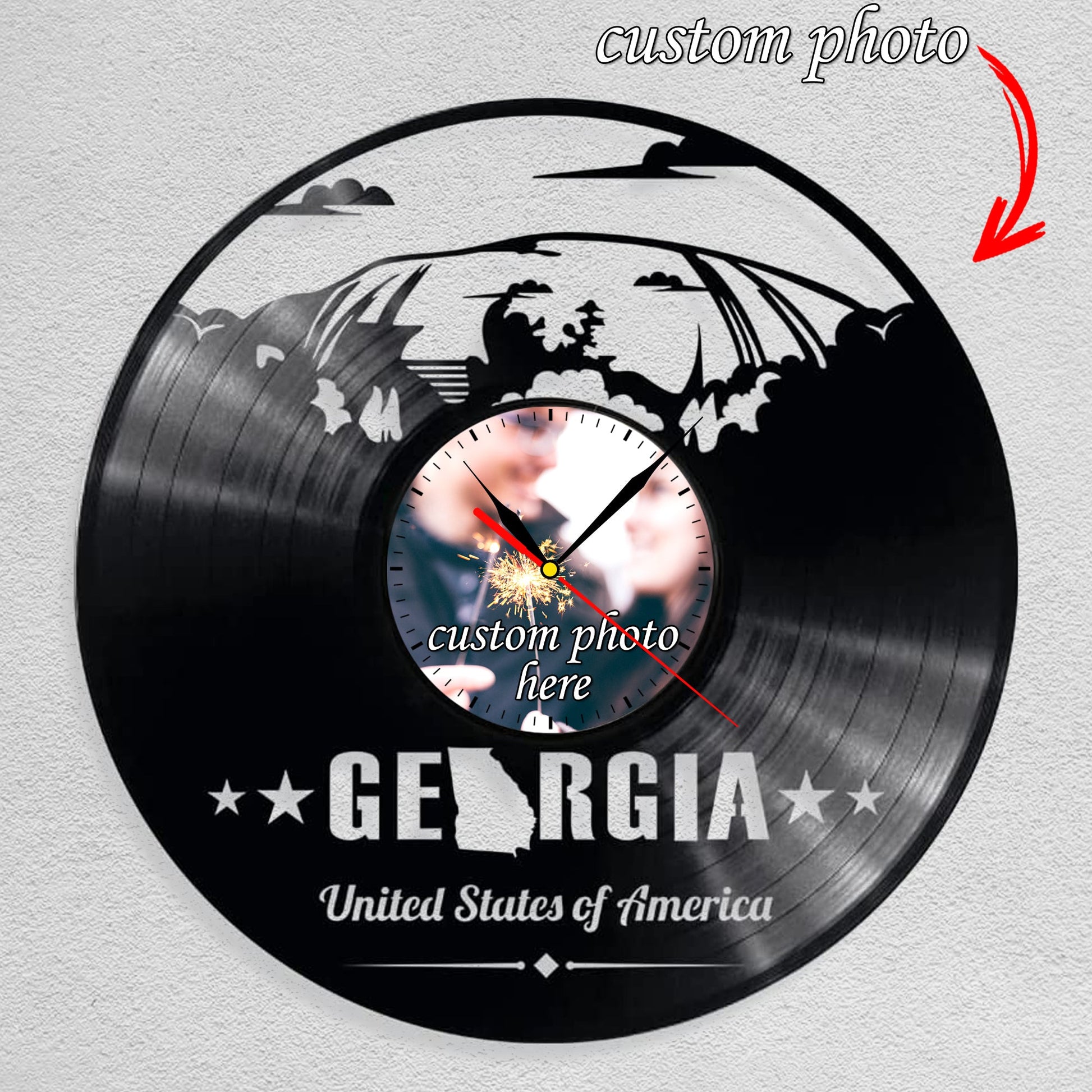 Personalized Georgia USA State Wall Clock – Custom LP Record Design, Silent Quartz Movement