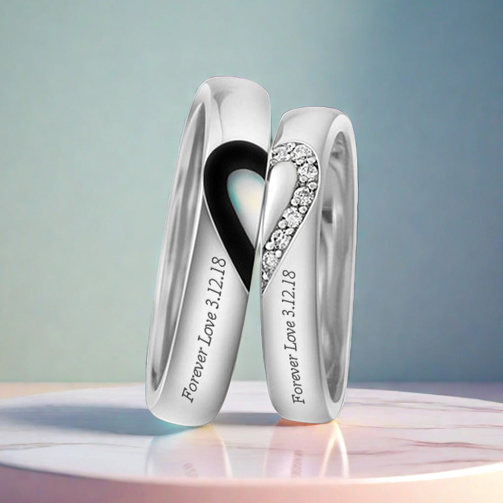 Personalized Half Hearts Rings Set for a Couple - 18K Gold Plated Silver