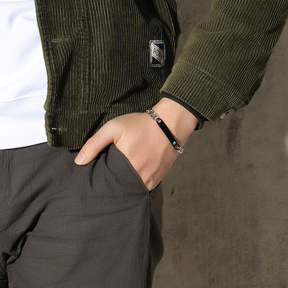 - Material: Hypoallergenic Titanium Stainless Steel with Gold Plating (one bracelet), Black Enamel Plating (other bracelet)
