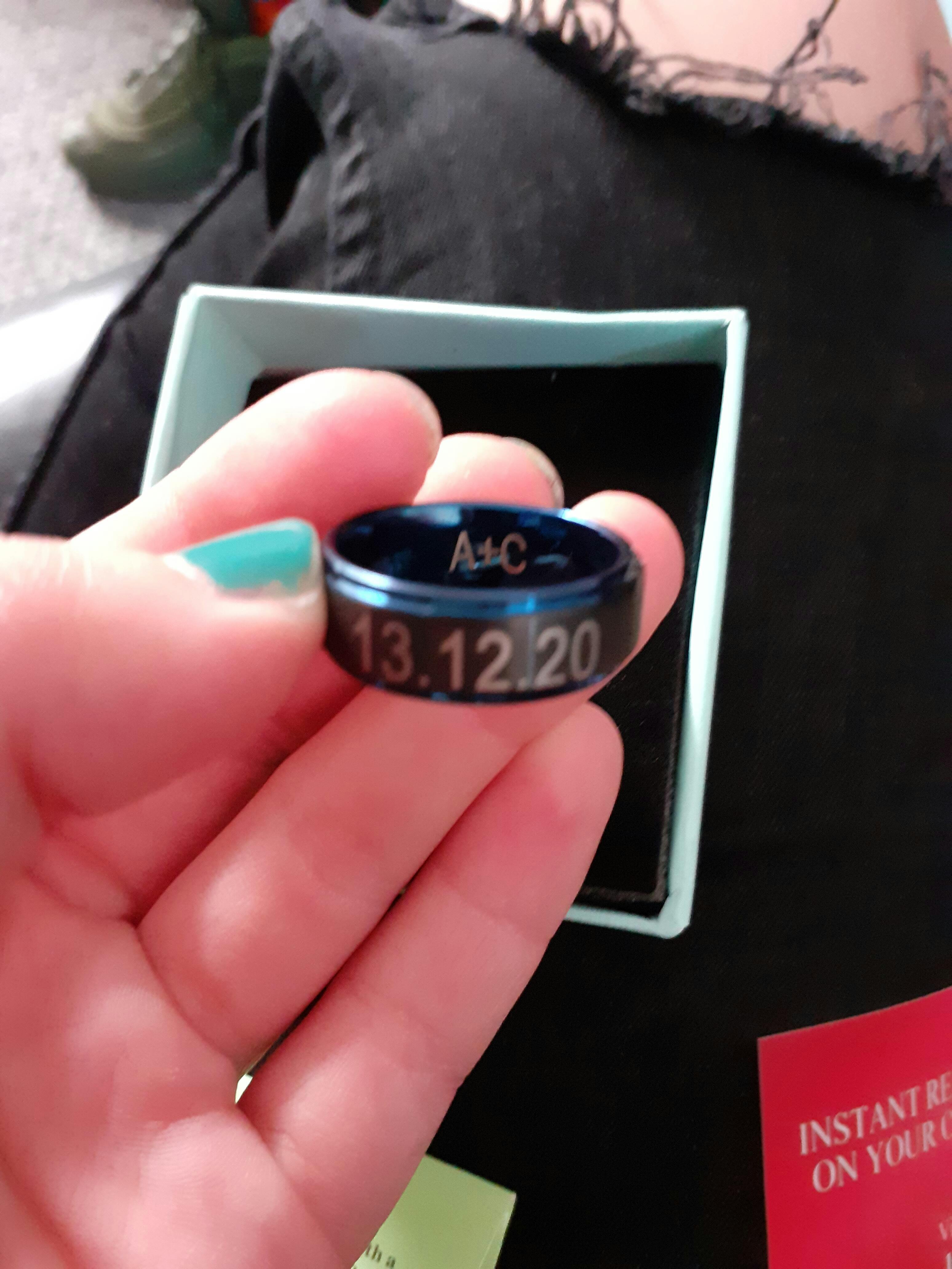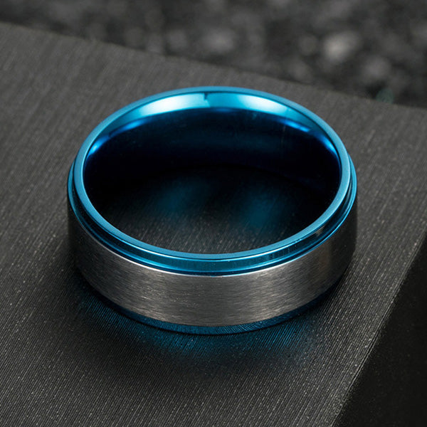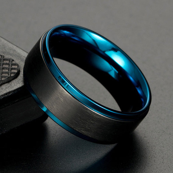Personalized Mens Promise Ring 8mm Black Blue Titanium