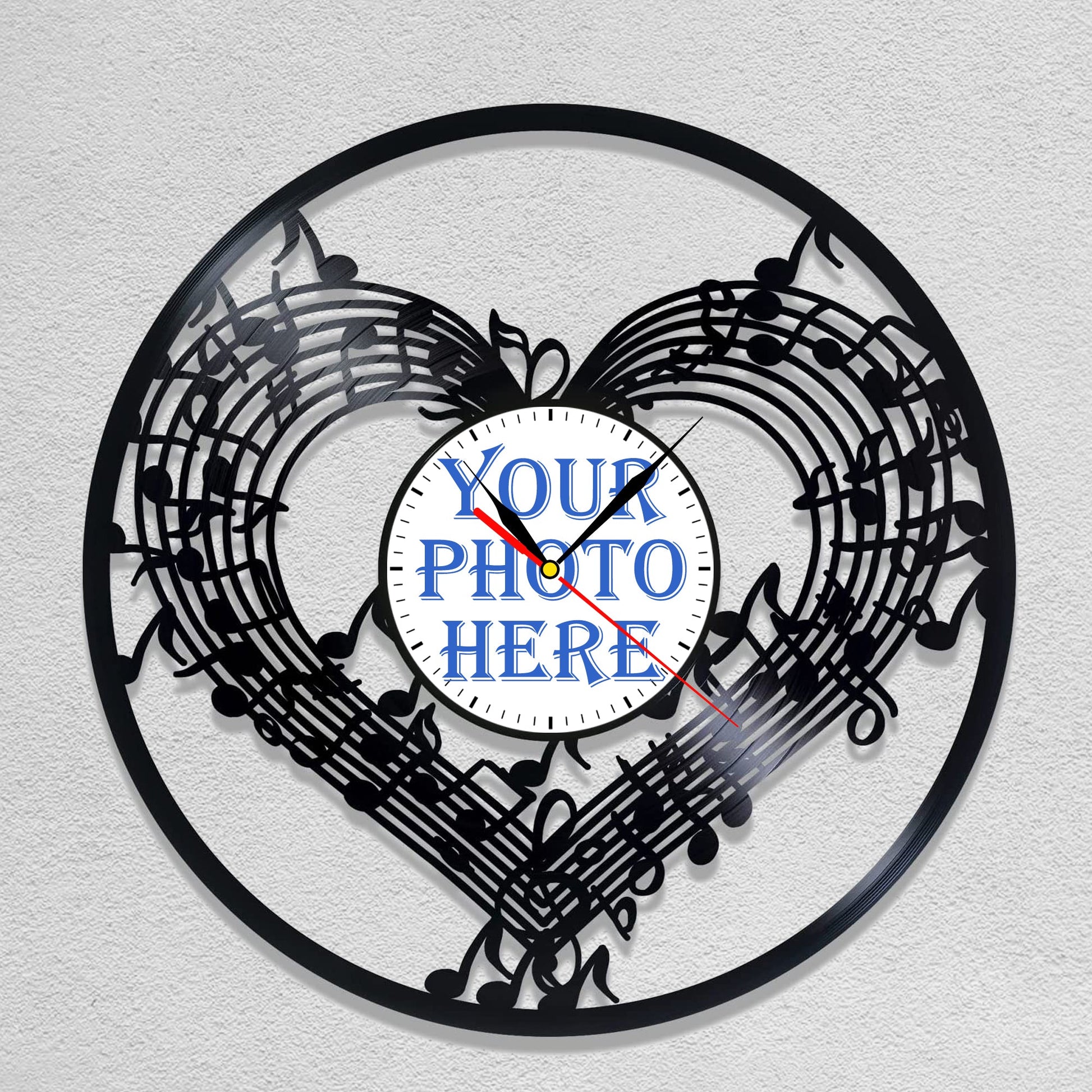 Personalized Music Notes LP Record Wall Clock – Custom Photo & Name, Silent Quartz