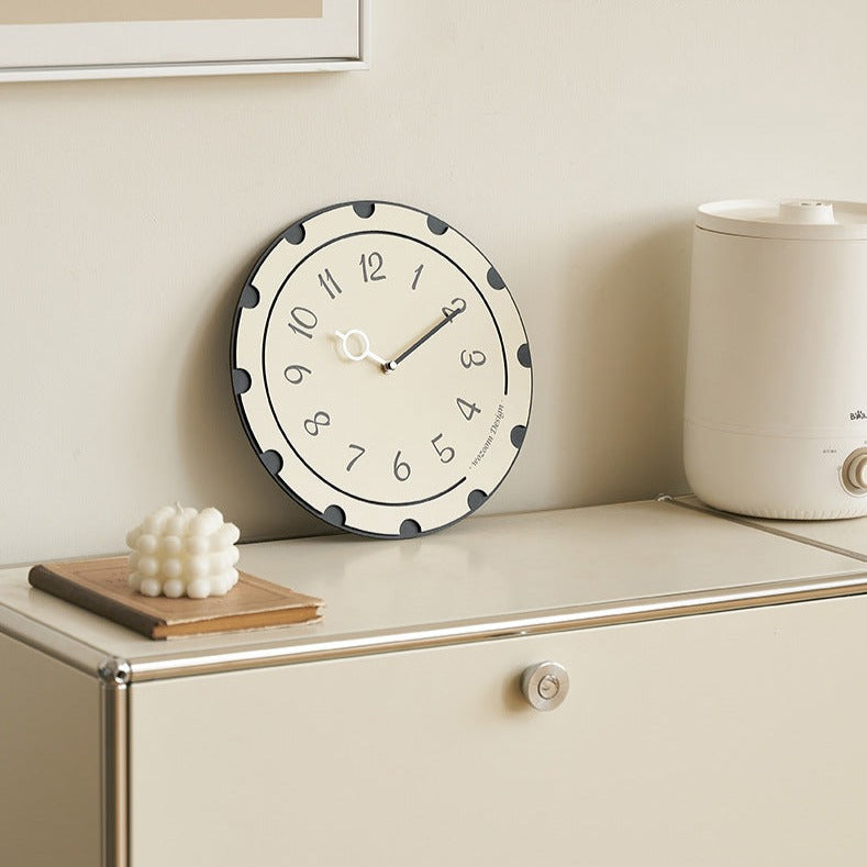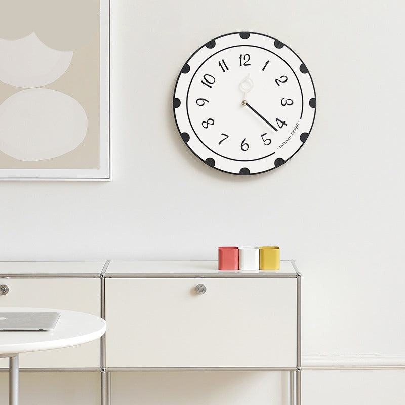 Bring a touch of whimsy and minimalist charm to your living room or bedroom with the Polka Dot Circular Analog Wall Clock. This eco-friendly timepiece features a classic round shape adorned with a playful polka dot pattern, making it a perfect addition to any modern décor.