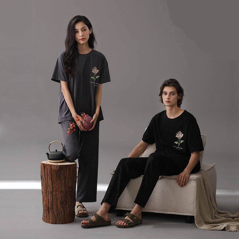 Enjoy ultimate comfort and coordinated style with our Premium Cotton 4-Piece PJs/Loungewear for Couples. Crafted from a soft and breathable blend of 96% premium cotton and 4% spandex, this short-sleeve set offers a comfortable and relaxed fit, perfect for spring and summer. The "cute" design (needs further clarification) makes it ideal for casual outdoor activities, relaxed hangouts, and everyday wear.