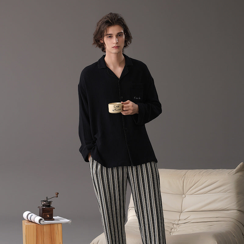 Our Premium Cotton Modern Cozy Couples Pajamas Set offers a perfect blend of comfort and sophistication. Crafted from 100% Grade A double-layer cotton, this set ensures a luxurious and cozy sleep experience. The minimalist design and classic fit offer a timeless and versatile look, making it perfect for any occasion.