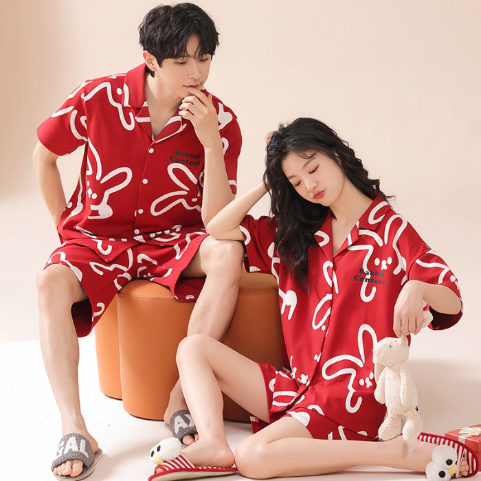 Vibrant "Rabbit Contour" Couple's Pajama Set