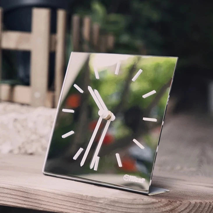 Introduce an element of modern elegance and functionality to your office, bedroom, living room, or study with the Real Mirror Decorative Silent Side Table Clock. This unique timepiece boasts a sleek 18cm x 5.5cm x 18.5cm frame crafted from high-quality acrylic, featuring a mirrored surface that reflects its surroundings and adds a touch of sophistication to your décor. The silent sweep movement ensures a peaceful environment, free from the annoyance of ticking, making it perfect for bedrooms and study rooms.