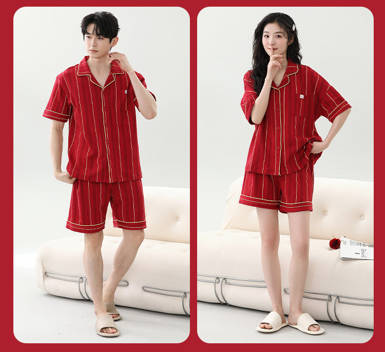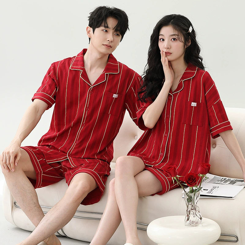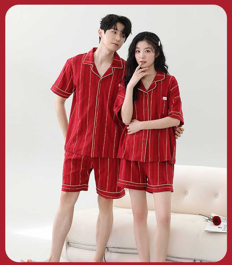 Red Striped Couple Pajamas: Stylish Matching Summer PJs